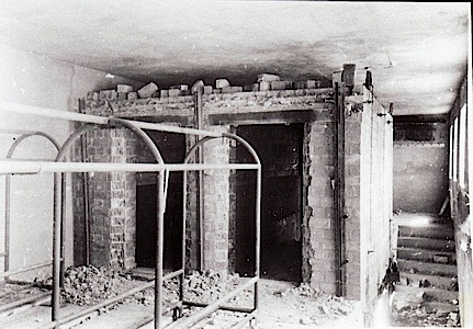Anmerkung zur Entlausungsbaracke U.He.: Sie war von allen „Gebäuden des Konzentrationslagers Bisingen aus Stein errichtet – hatte drei Schornsteine, von denen der mittlere erstaunlicher Weise höher war als die anderen beiden. Das „Kellergeschoß“ – Bild assoziert ganz „eigene“ Gedanken über einen möglichen, geplanten Verwendungszweck des Gebäudes.