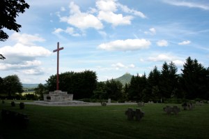 Im Zentrum der auf einer Anhöhe liegenden Friedhofanlage wurde ein großes Kreuz aufgestellt, das nach den Vorstellungen der Franzosen weithin sichtbar sein sollte. Mittlerweile ist das nicht mehr der Fall, da das umliegende Gelände von hohen Bäumen umgeben ist, die den Friedhof abschirmen. Anfangs stand je ein Holzkreuz stellvertretend für die 1158 Opfer, die aus den Massengräbern umgebettet wurden.