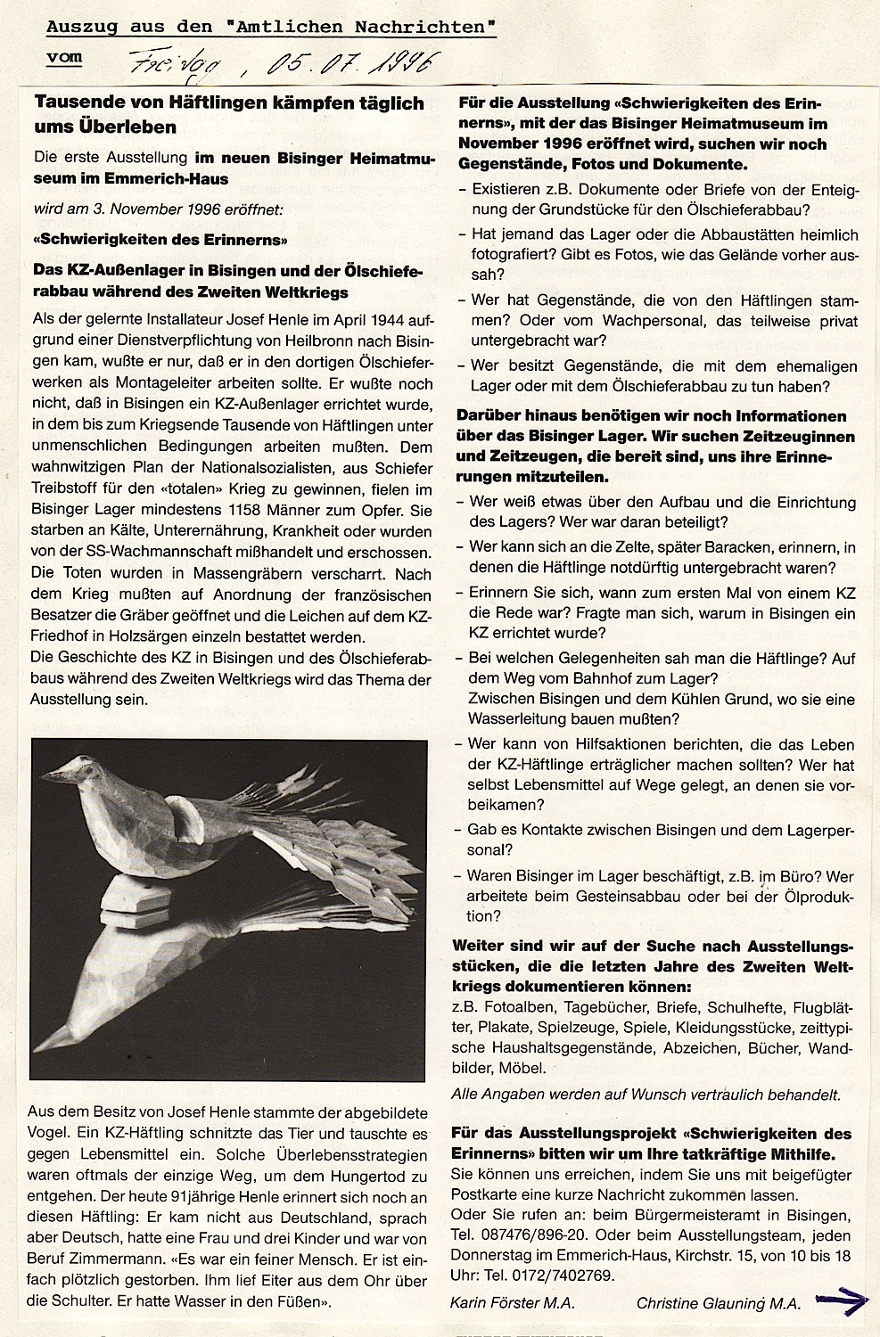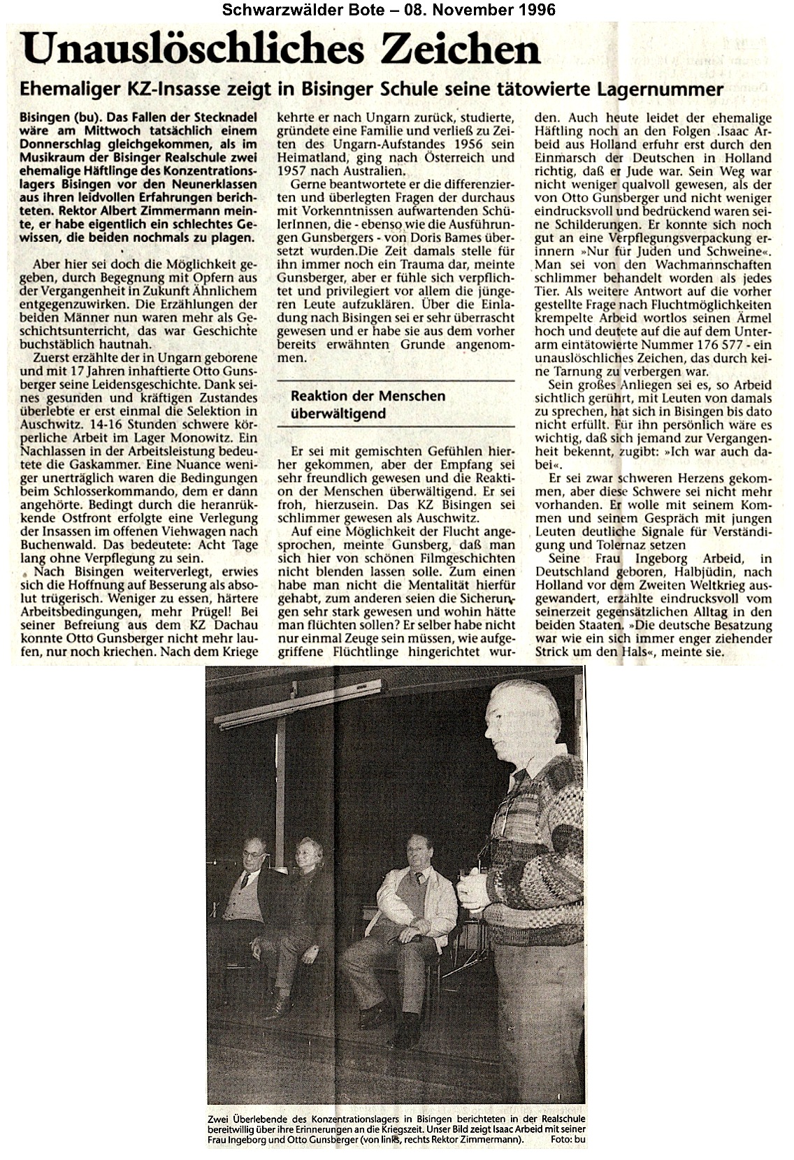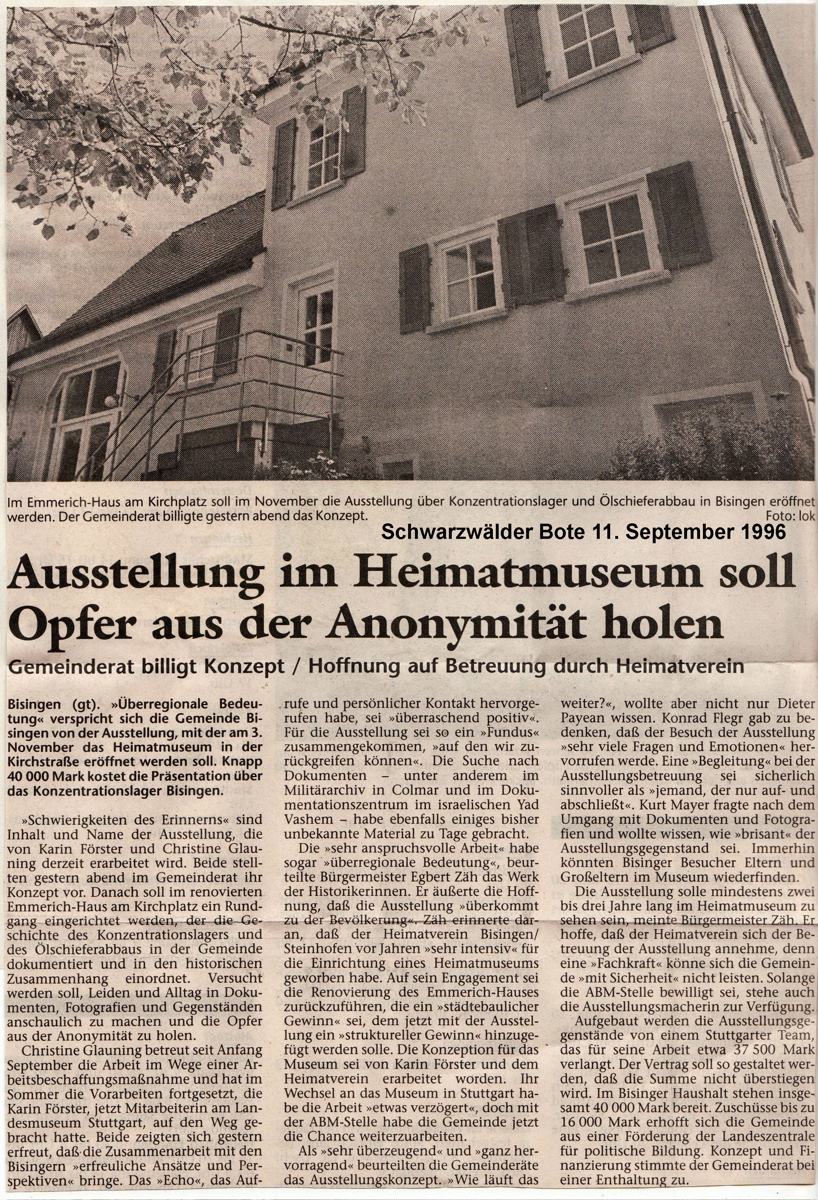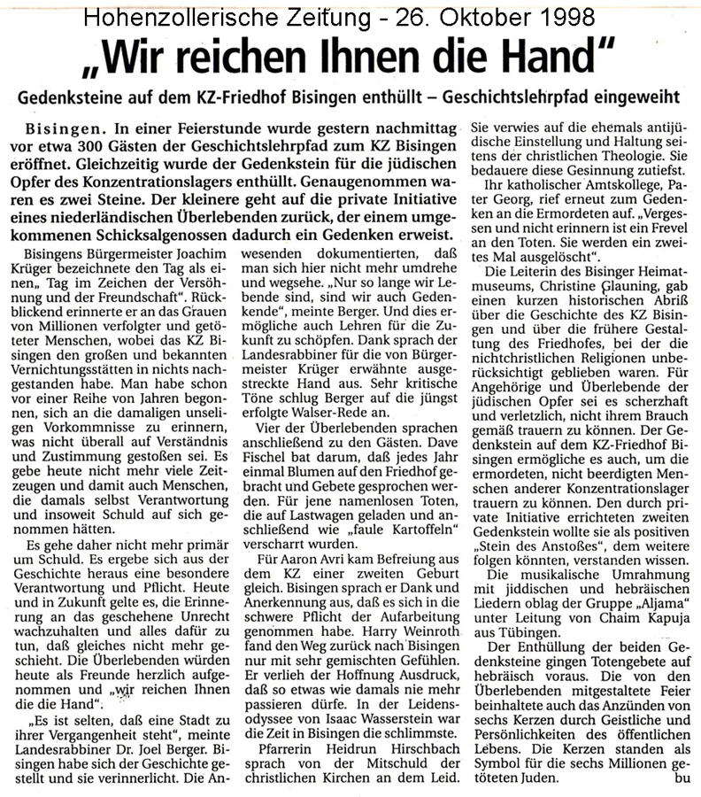 Auszug aus dem Schwarzwälder Bote vom 26. 10. 1998