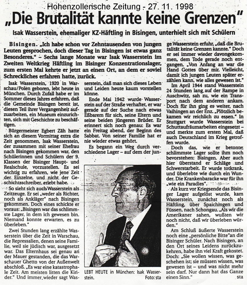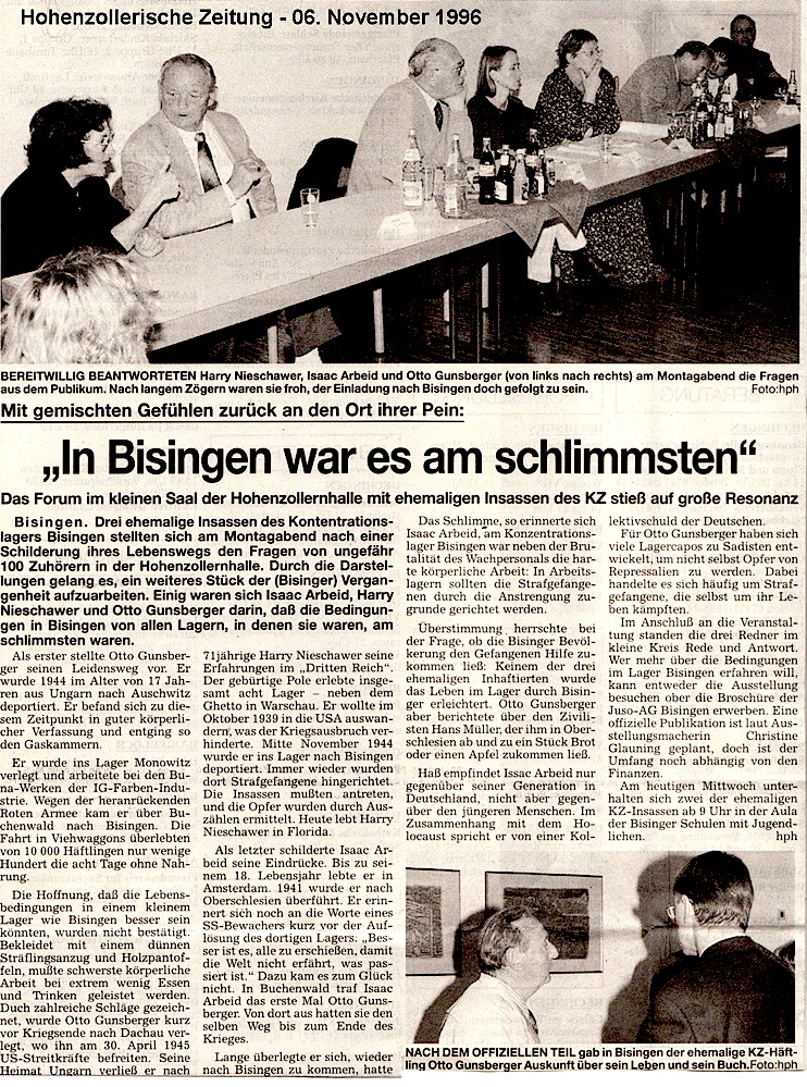 Harry Weinroth fand den Weg zurück nach Bisingen nur mit „sehr gemischten Gefühlen“. Er verlieh der Hoffnung Ausdruck, daß so etwas wie damals nie mehr passieren dürfe. In der Leidensodyssee von