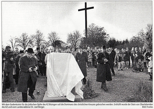 Die Leiterin des Bisinger Heimatmuseums, Christine Glauning, gab einen kurzen historischen Abriß über die Geschichte des KZ Bisingen und über die frühere Gestaltung des Friedhofs, bei der die nichtchristlichen Religionen unberücksichtigt geblieben waren. Für Angehörige und Überlebende der jüdischen Opfer sei es schmerzhaft und verletzlich, nicht ihrem Brauch gemäß trauern zu können. Der Gedenkstein auf dem KZ-Friedhof Bisingen ermögliche es auch, um die ermordeten, nicht beerdigten Menschen anderer Konzentrationslager zu trauern. Den durch private Initiative errichteten zweiten Gedenkstein wollte sie als positiven „Stein des Anstoßes“, dem weiter Folgen könnten, verstanden wissen. Die musikalische Umrahmung mit jiddischen und hebräischen Liedern oblag der