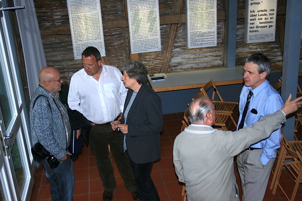 Foto von li → re: B. Ullrich für die Hohenzollerische Zeitung, Bürgermeister J. Krüger, H. Grunert-Museumkuratorin und stellvertretende Vorsitzende, H. Martin-unser Fachmann für die NS-Geschichte, Herr Neumaier vom Verfassungsschutz.