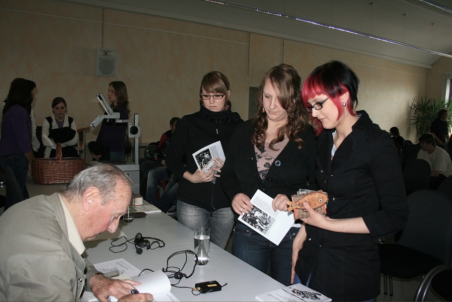 Mindestens so wichtig wie das Treffen mit alten Freunden und Bekannten war Otto Gunsberger die Begegnung mit der jungen Generation. Im Technischen Gymnasium Balingen (Bild li) sowie in den Realschulen Haigerloch und Bisingen fand er ein äußerst aufmerksames Publikum, das mucksmäuschenstill seinen Schilderungen über die Stationen seines Leidens folgte.
