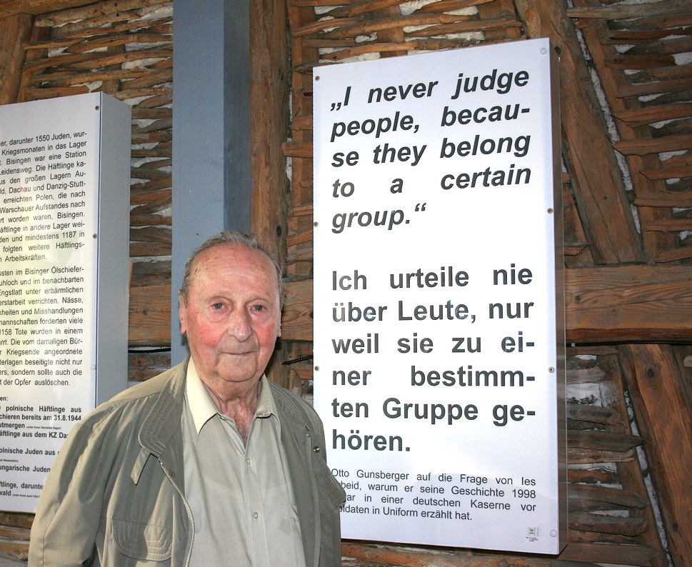 „Wir sollten versuchen, gemeinsam eine bessere Welt zu schaffen, in der keine dieser Tragödien, die Sie in dieser Ausstellung sehen und von denen ich Ihnen berichtet habe, jemals wieder vorkommen“ sagte Otto Gunsberger bereits 1996 in Bisingen. Nach wie vor ist ihm das ein wichtiges Anliegen. –Ende-