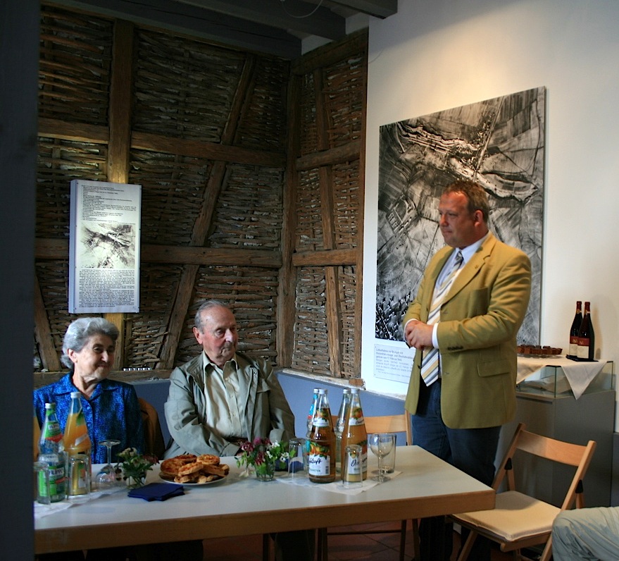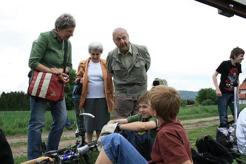 Ja, und dann kam der Überraschungsbesuch: in Begleitung von Hanne Grunert und Ines Mayer wollten es sich Otto und Eve Gunsberger, sie waren schon bei der Eröffnung des Geschichtslehrpfads 1998 Gäste der Gemeinde Bisingen, nicht entgehen lassen einen Blick auf die „Aktion am Steg“ zu werfen.