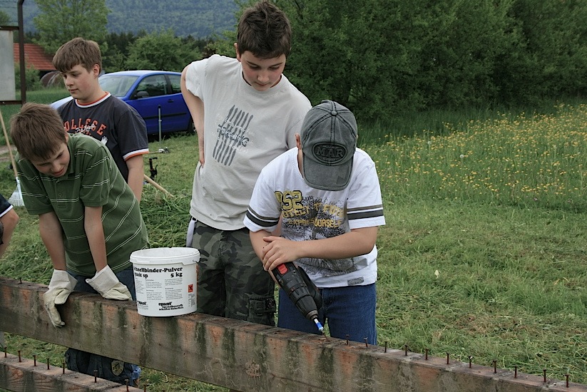 Um 14:00h fand traf sich die kleine Schülergruppe, sieben siebt- und zwei sechst Klässler, mit ihrem Lehrer am Einsatzort und ließ sich von einem Bauhof-Mitarbeiter in die Arbeit einweisen.