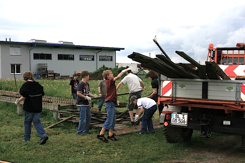 Am Donnerstag, 14. Mai. war es so weit. Geschichtslehrer Huesfeld, Realschule Bisingen, war fest entschlossen mit seiner Schüler-AG am Nachmittag beim Abriss des Stegs mitzuhelfen. Notwendig geworden war diese Aktion, da bereits im vergangen Herbst jahrelangen Witterungseinfluss aber auch leider mutwillige Zerstörung den Steg nahezu unbegehbar gemacht hatten.