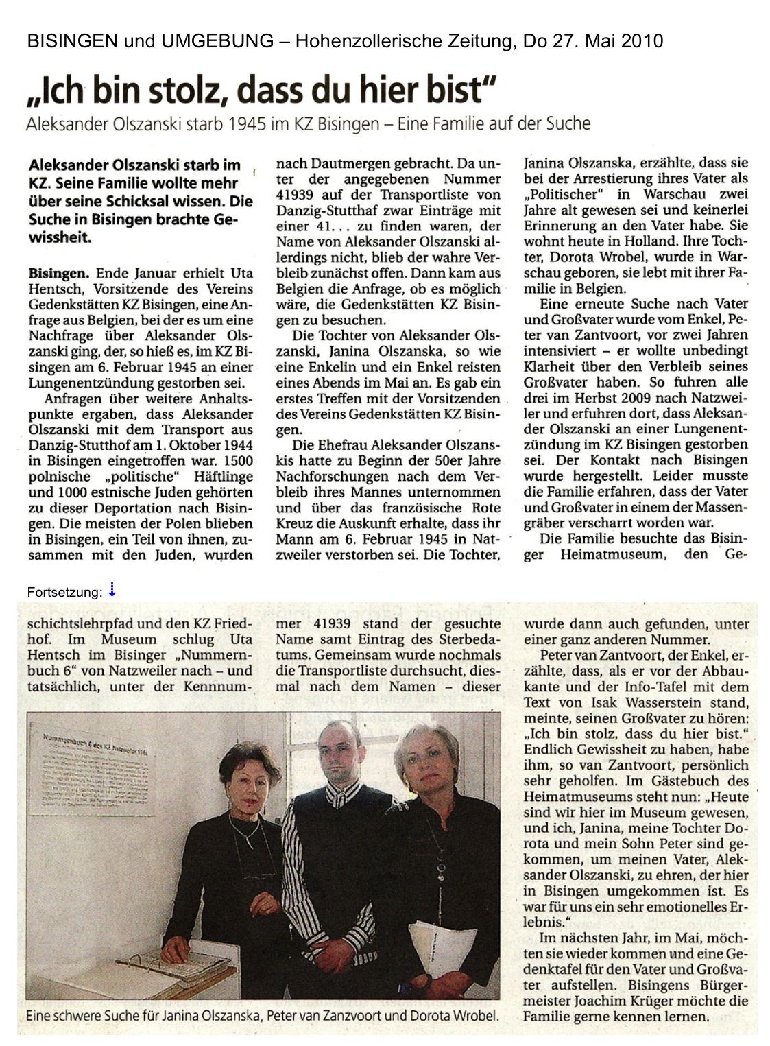 Sonntag, 09. Mai 2010 – Den nachfolgenden Bericht stellte Herr Thomas Riedlinger der Vorsitzenden des Vereins „Gedenkstätten KZ Bisingen“ zur Verfügung. Er hat ihn für den Schwarzwälder Bote, Rottweil, geschrieben. An dieser Stelle einen herzlichen Dank an Herrn Riedlinger. Die Vereine „Initiative Eckerwald“ und „Gedenkstätten KZ Bisingen“ gehören zum „Unternehmen Wüste“ Alle Bilder: U. Hentsch.