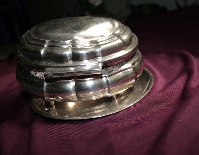 Deckel erhielt eine Beule und ein Füßchen brach ab.