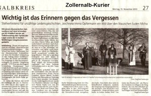 Es folgten viele weitere Namen von jüdischen Familien in Haigerloch, deren Wohnungseinrichtungen dem wahnsinnigen Zerstörungswillen des braunen SS-Pöbels zum Opfer fielen. 11 Haigerlocher Männer wurden verhaftet und in das Konzentrationslager Dachau eingewiesen, von wo sie erst nach Wochen wieder frei kamen.