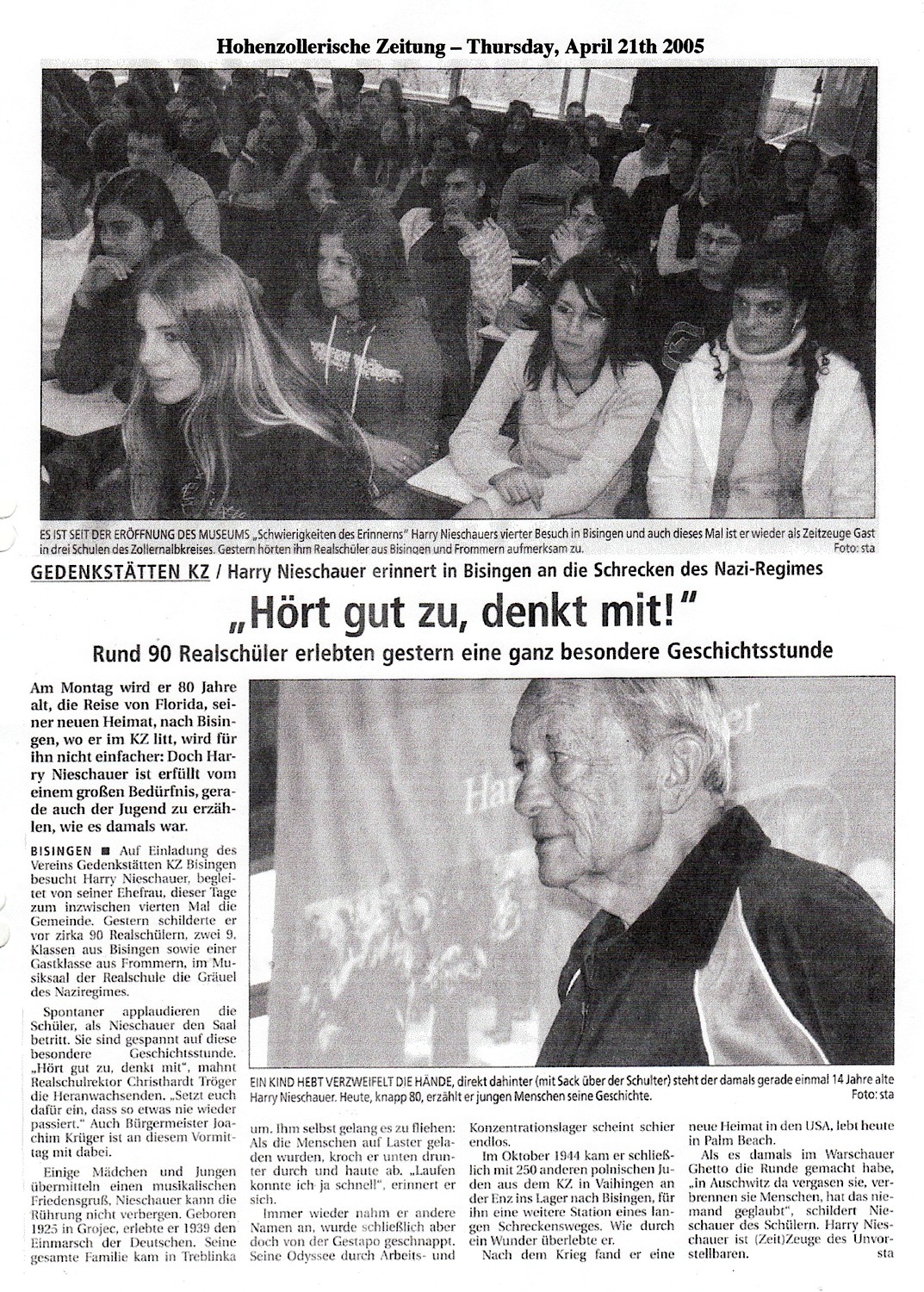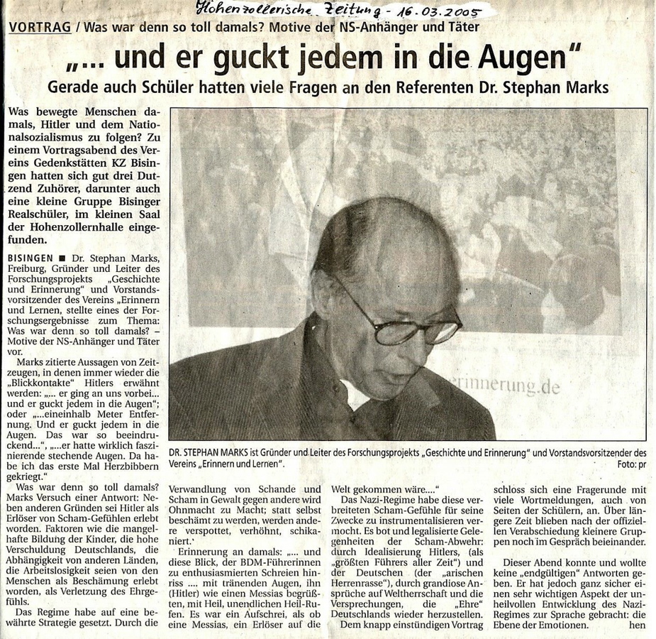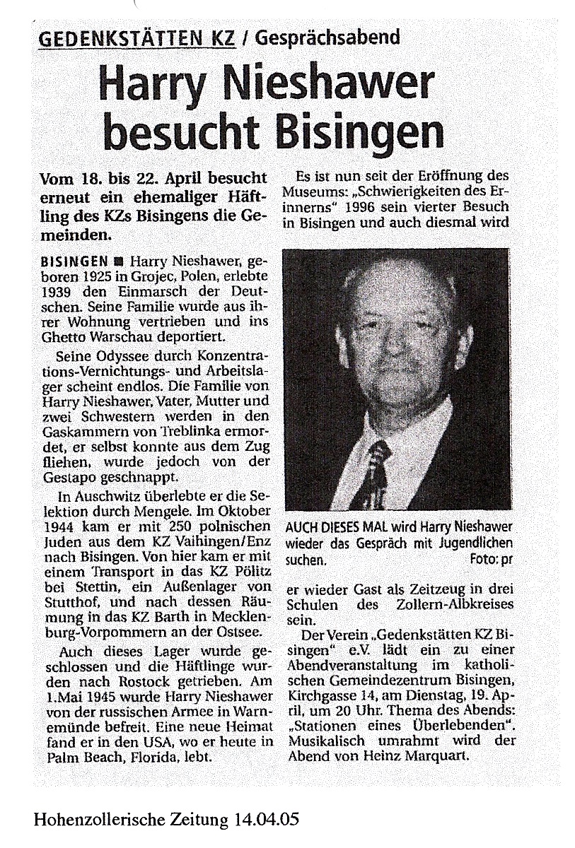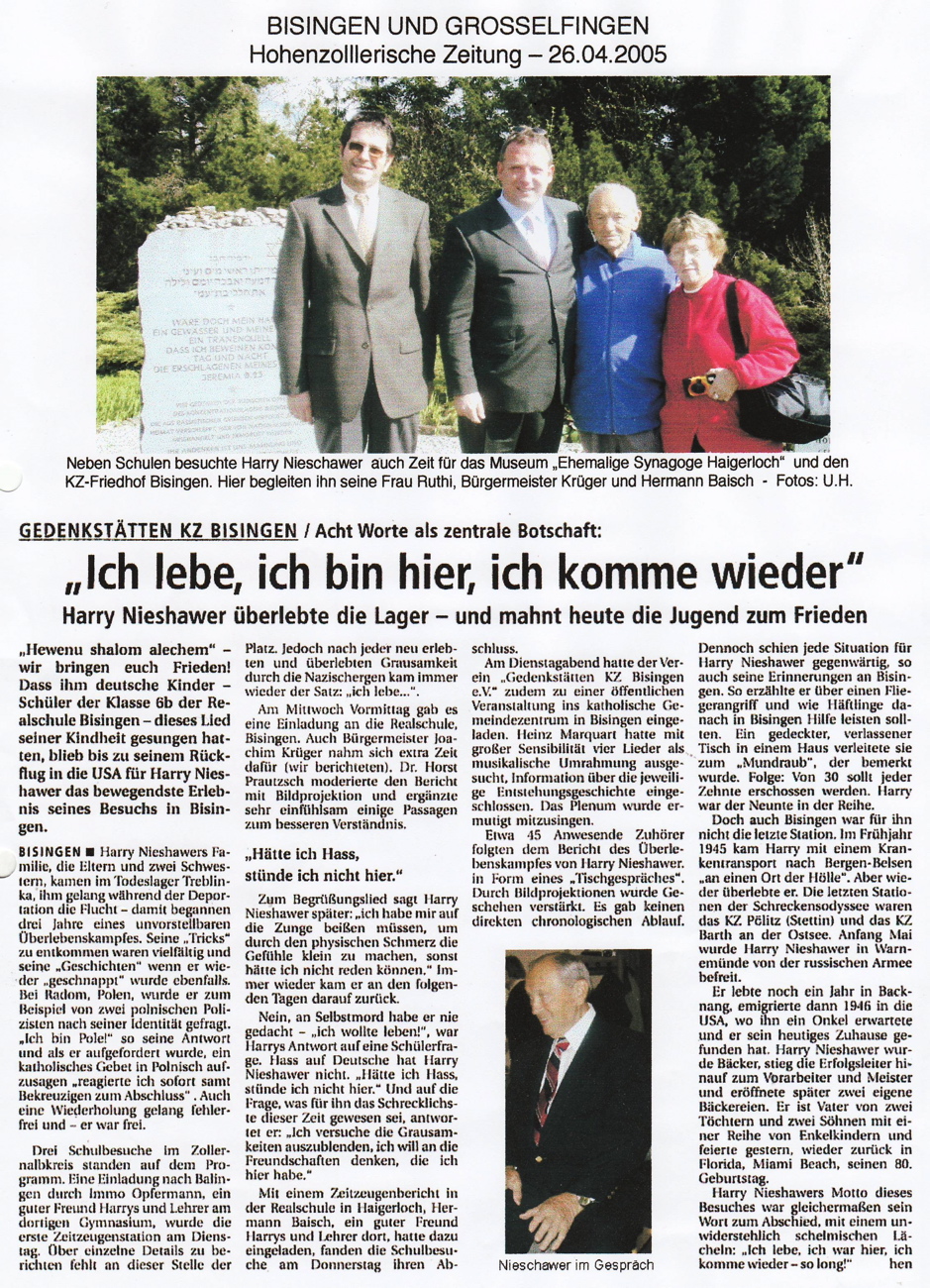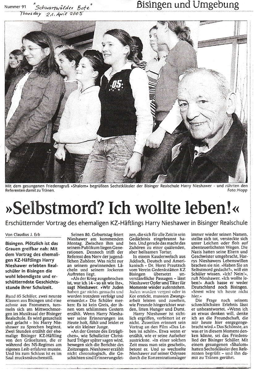 Am Montag, 09. Mai besuchte Shalom Stamberg die HGW-und Realschule in Bisingen und am Dienstag Vormittag war Shalom Stamberg als Zeitzeuge Gast in der Sichelschule Balingen. Im Folgenden Zeitungsberichte und Bilder dieses Nachmittags am 10. Mai 2010