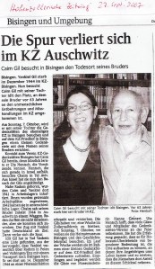 Die Begegnung mit Idit und Chaim Gil in Tel Aviv Ende September 2007 führte zu einem neuen Ereignis für den Verein Gedenkstätten KZ Bisingen. Der Bericht der Vorsitzenden des Verein der aus Tel Aviv nach Bisingen ging, zeigt in Kürze worum es geht.