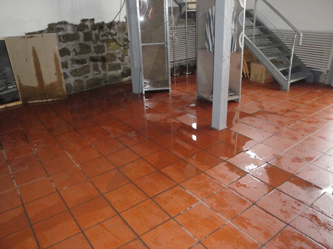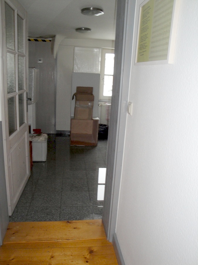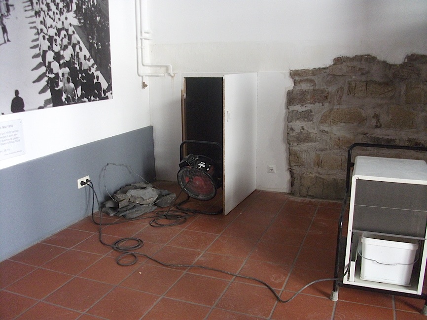 dahin unbeobachteten „Springflut“ aus dem Waschbecken der obere Etage gewahr. Sie hatte bereits den unteren Ausstellungsraum und die Küche „bewässert“! Per Anruf waren sehr schnell die entsprechenden Helfer der Gemeinde Bisingen zur Stelle – und einige Fotos zeigen z.B. den Wasserstand im Heizungskeller, Bereich Öltanks 10 cm +!. Weitere Details können in den beiden Zeitungsberichten nachgelesen werden. Durch die Nässe im gesamten Gebäude und die durch díe aufgedrehten Heizungen zwecks besserer Trocknung herrscht im Haus eine subtropische Atmosphäre, begleitet von nicht angenehmen „Modergeruch“.