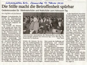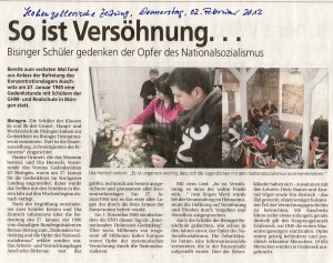 Mittwochvormittag, 15. Februar 2012: um 13:30h wollten sich die Museumskuratorin der Gemeinde Bisingen, Hanne Grunert und die Vorsitzende des Vereins Gedenkstätten KZ Bisingen, Uta Hentsch, im Rathaus Bisingen treffen um gemeinsam einen Förderantrag auszufüllen.