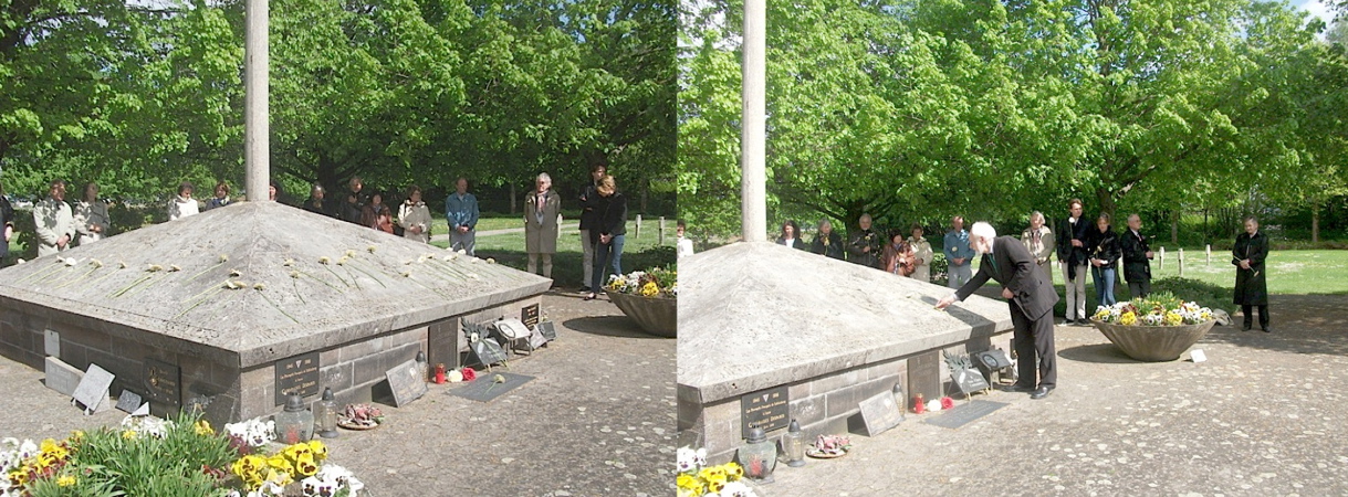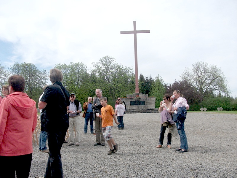 gab eine Gedenkminute des Schweigens mit anschließender Niederlegung von gelben Blumen auf den Sockel des großen Kreuzes. Abschließend lud Gerhard Lempp dazu ein, einander die Hände zu reichen und gemeinsam das Lied „We shall over come…“ zu singen.
