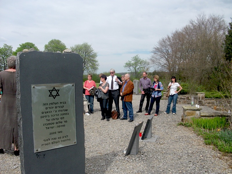 Um 15Uhr gab es einen Besuch des KZ-Friedhofs Schömberg und der Gedenkstätte Dautmergen-Schömberg (Bild: Angehörige aus Holland – die Namen der Väter sind auf dem Namen-Würfel eingetragen – und Hanne Grunert, Bisingen).