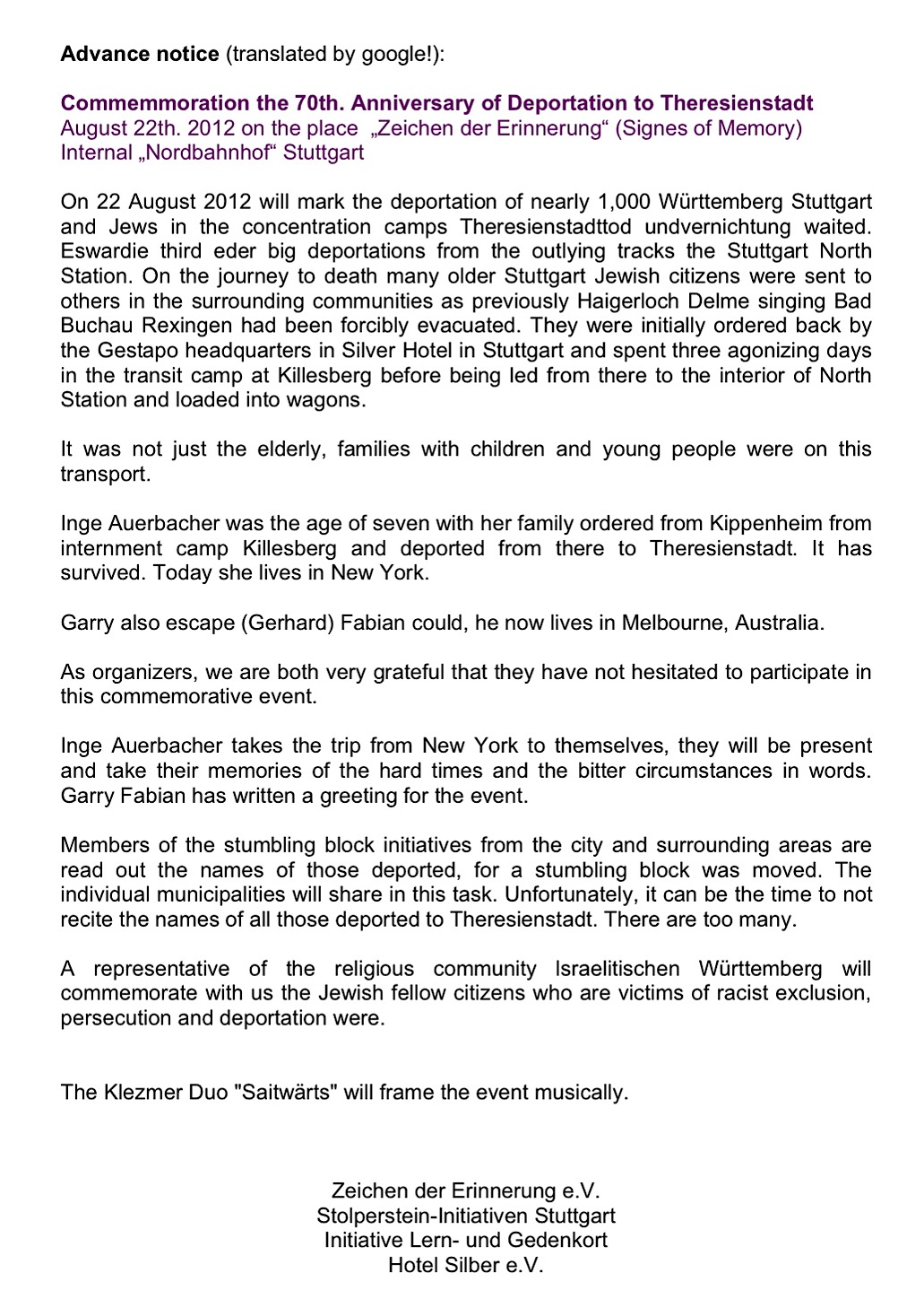 Über den Verlauf des Tages kann in nebenstehenden Pressebericht, den Dieter Grupp, 2. Vorsitzender des Vereins „Gedenkstätten KZ Bisingen“ geschrieben hat, nachgelesen werden.