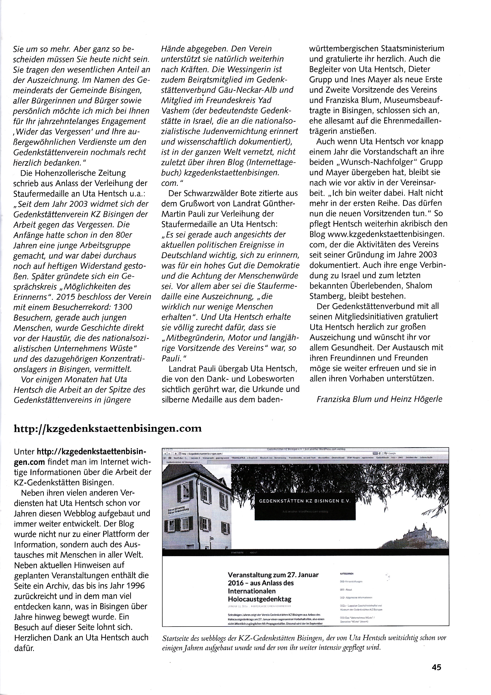 Gedenkstättenrundschau April 2016 -Staufermedaille -2 Veröffentlicht Mai 1, 2016 in 2063 × 2923 in Jahreshauptversammlung und Ehrung für Uta Hentsch ← Zurück