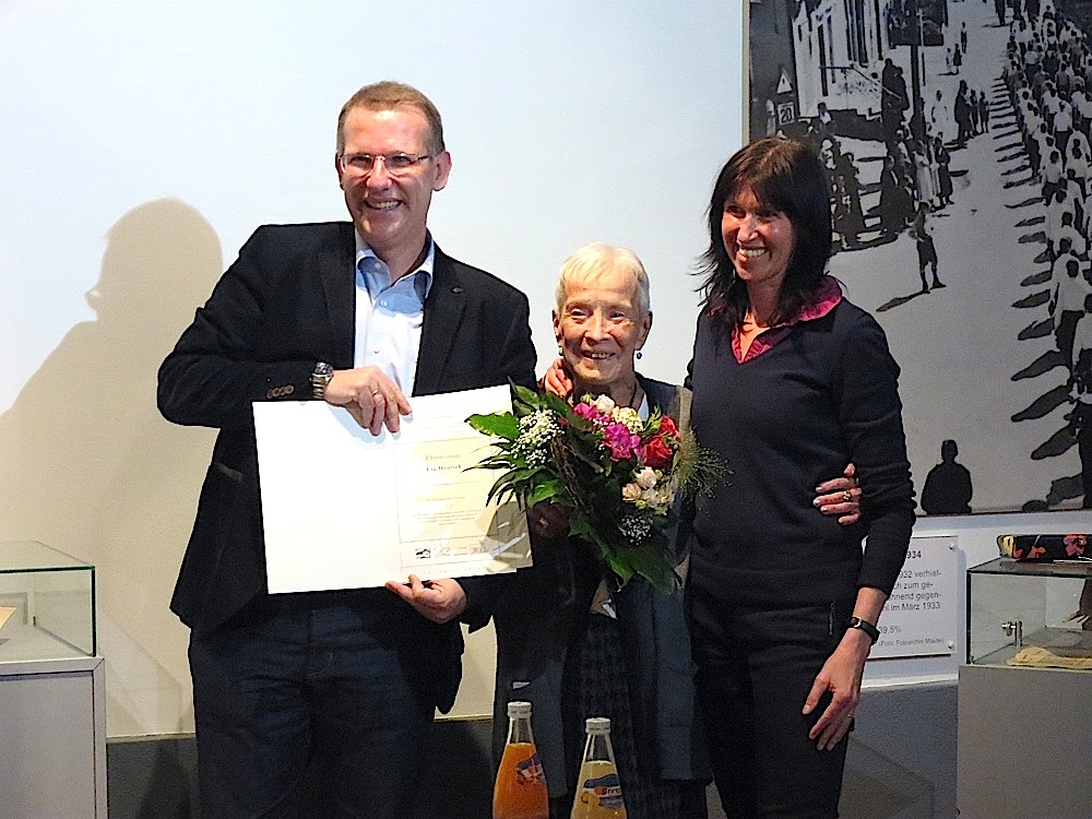 IMG_1410 Grupp, Hentsch, Mayer Veröffentlicht April 25, 2016 in 1000 × 750 in Jahreshauptversammlung und Ehrung für Uta Hentsch Weiter → Der Vorsitzende des Gedenkstättenvereins Dieter Grupp und die zweite Vorsitzende Ines Mayer freuen sich mit Uta Hentsch (Mitte) über ihre Ernennung zur Ehrenvorsitzenden.