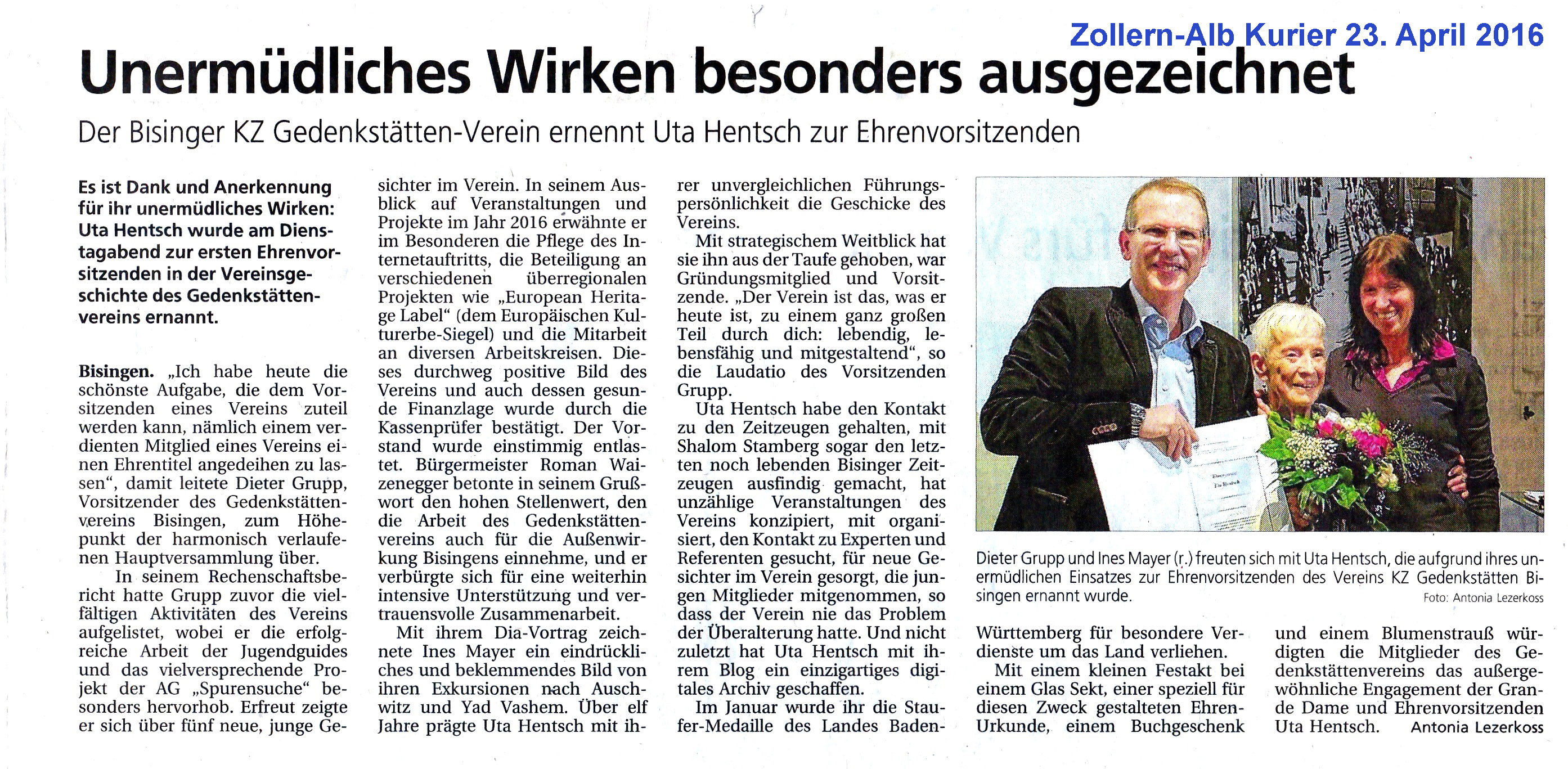 Zollern-Alb Kurier 23.4.2016 Veröffentlicht April 25, 2016 in 2787 × 1367 in Jahreshauptversammlung und Ehrung für Uta Hentsch ← Zurück Weiter →