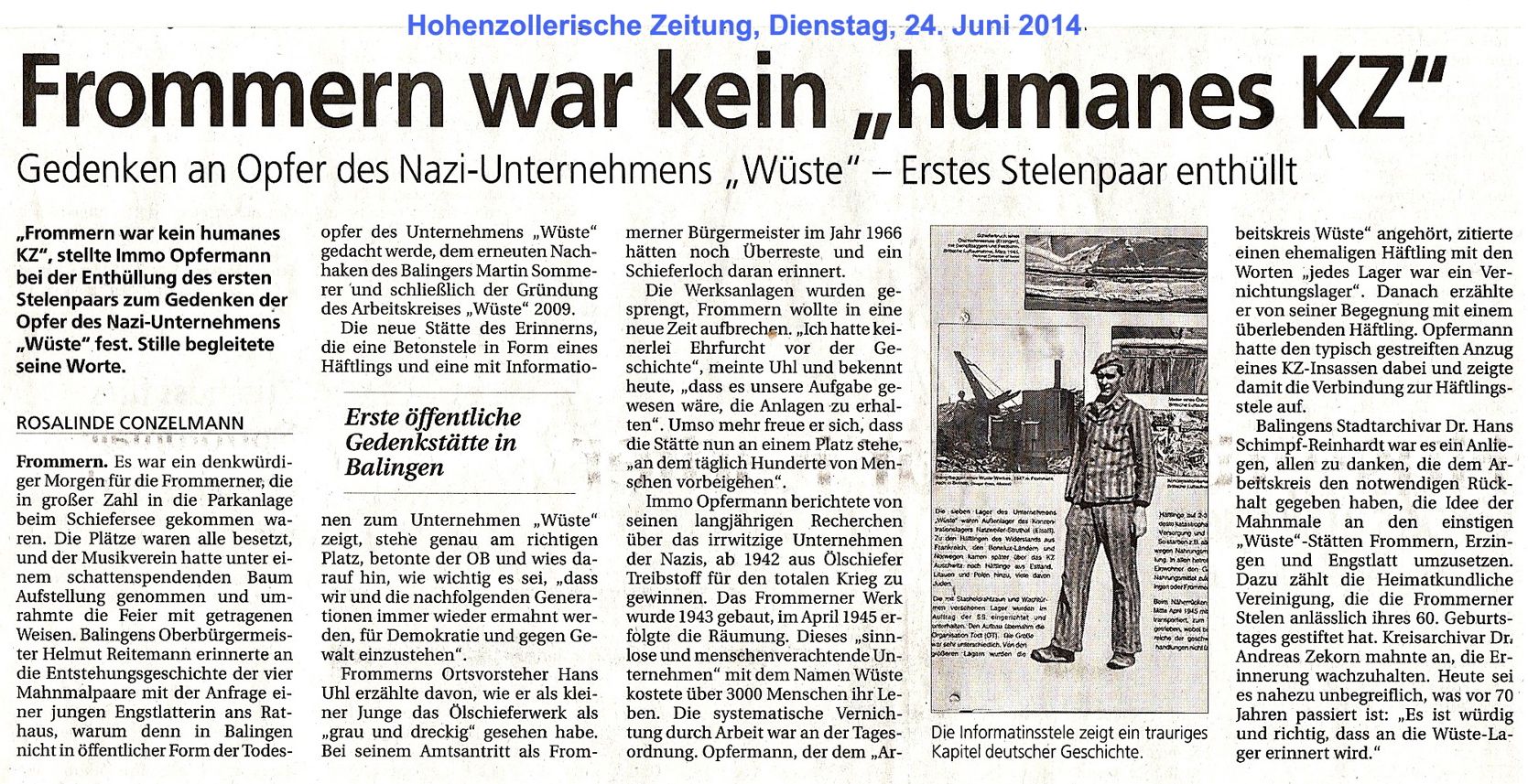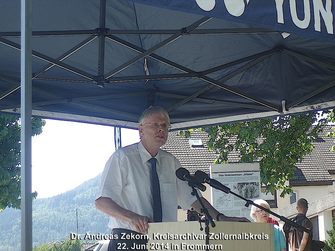 ← Die Rede von Kreisarchivar Dr. Andreas Zekorn, Zollernalbkreis -Balingen, enthielt Teile aus seinem Beitrag für die Gedenkstätten-Rundscshau, Nr. 14 / März 2015 „Ende mit Schrecken…“. Hier in der pdf.Datei finden Sie den gesamten Beitrag: Ende mit Schrecken – Die Räumung der Lager des Unternehmens %22Wüste%22 im April 1945