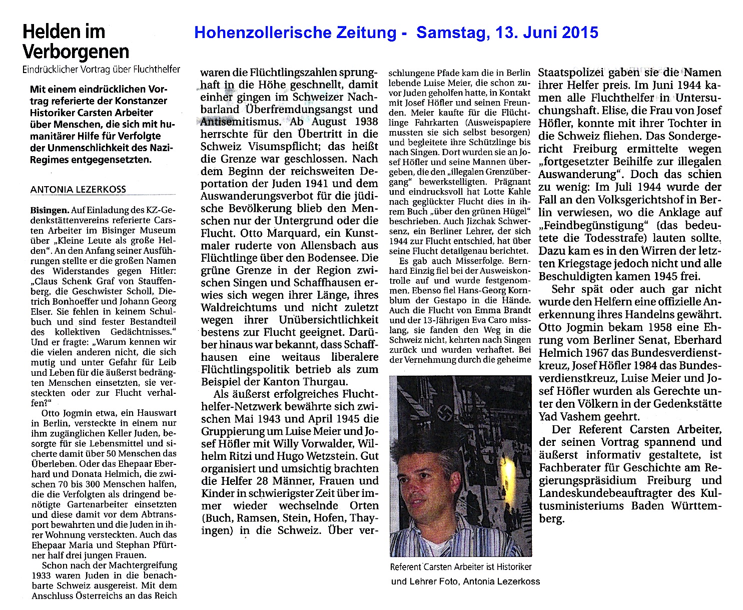 Link Hohenzollerische Zeitung, Samstag, 13. Juni 2015: Helden im Verborgenen