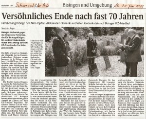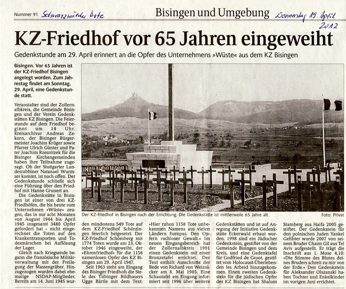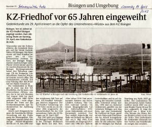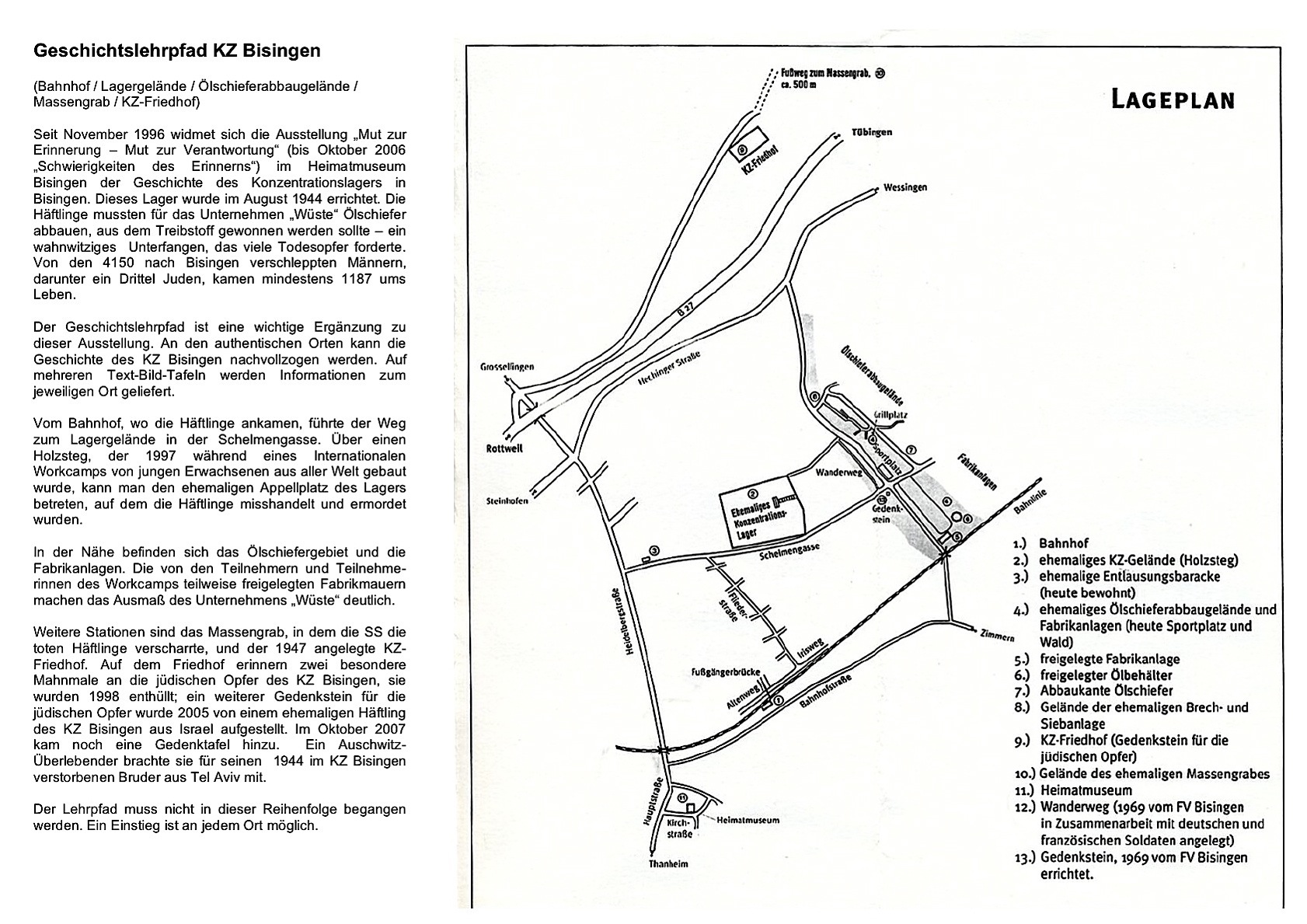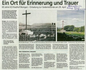 Als Exkursionen in die Umgebung standen der Besuch der Synagogen in Hechingen und die KZ-Gedenkstätten in Bisingen auf dem Programm.Uta Hentsch führte die Schüler auf den KZ-Friedhof und verband damit eine Pflegeaktion. Die Schüler befreiten die Wege von Heckenbewuchs und säuberten die beiden Gedenksteine, die 1998 mit der Eröffnung des Geschichtslehrpfads Bisingen auf dem KZ-Friedhof enthüllt wurde. Diese Reinigung stand schon seit langen an – der Bauhof Bisingen stellte die notwendigen Utensilien bereit und die Schüler haben in der Tat großartig an diesem Nachmittag gearbeitet – wir sagen „unseren Boys“ vielen Dank – ihr wart super 🙂 Steinmetz Rager, Bisingen, Steinmetz, wird nach den Ferien die Schrift auf beiden Steinen neu unterlegen.