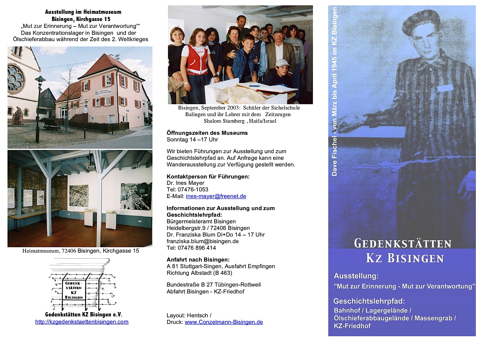 Das abschließende Treffen fand im Heimatmuseum Bisingen mit der Ausstellung „Mut zur Erinnerung – Mut zur Verantwortung“ statt. Dort erfuhren die Schüler über die verschiedenen Lebensgeschichten der Bisinger KZ-Überlebenden, von denen die meisten Bisingen seit den 1990er-Jahren mehrfach besuchten. Das Resümee der Schüler: Die AG war spannend und hat Spaß gemacht!