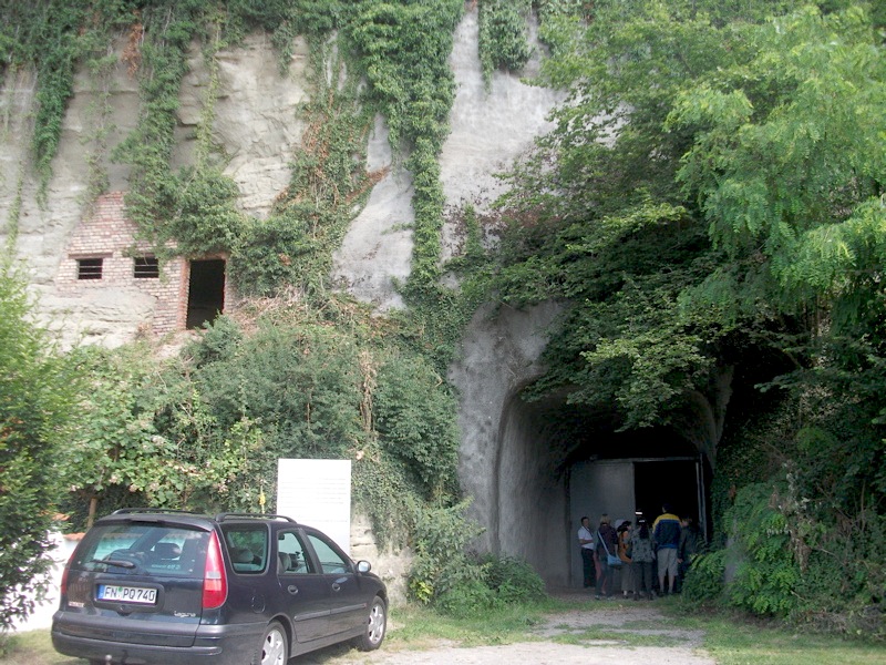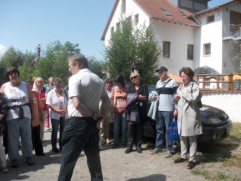 Anfang Juli erkundeten die Schüler dann mit Franziska Blum den KZ-Lehrpfad. Über die Zeit des Bisinger KZ’s und des Ölschieferwerks 1944-1945 hatten die Schüler bereits zuvor viel gehört. Nun besuchten sie die originalen Stätten des ehemaligen Lagers und Ölschieferwerks. An der Abbaukante konnten sie Ölschiefer brechen, der beim Erhitzen mit einem Feuerzeug einen teerig-öligen Geruch entwickelte. Bei den Betonruinen des alten Gebläses, das einst zum Trennen von Ölschlamm und Gas diente, merkte ein Schüler an: „Hier könnten wir ja auch das Gebüsch zurückschneiden.“